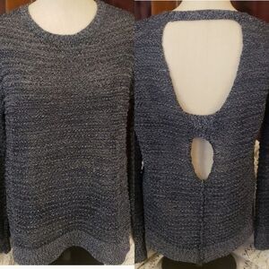 Anthropology Braeve open weave knit sweater open keyhole back. in New condition size xs. dark denim blue open weave lightweight knit. all about the back detailing. low scoop back with band across. bell sleeve. drop shoulder. chest 20" length 25".