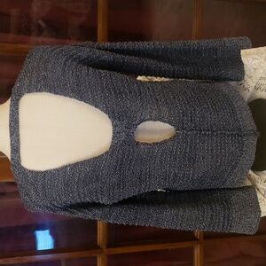 Anthropology Braeve open weave knit sweater open keyhole back. in New condition size xs. dark denim blue open weave lightweight knit. all about the back detailing. low scoop back with band across. bell sleeve. drop shoulder. chest 20" length 25".