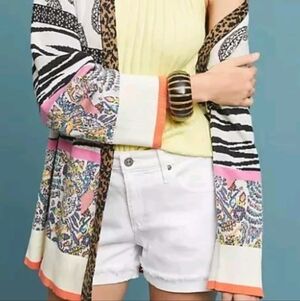 Anthropology Bricolage Open Front Fall Boho Cardigan Multicolor Paisley Sz XS