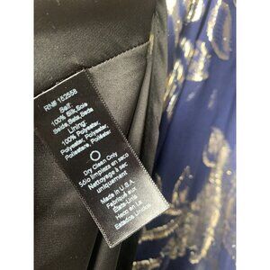 Add a touch of elegance to your wardrobe with this stunning navy and silver print gown by DELFI Collective. Made from pure silk and featuring a beautiful floral pattern, this long A-line dress will make you feel like a star at any occasion. The dress has long sleeves, a V-neckline, and a zip closure, making it perfect for weddings, parties, or cocktail events.