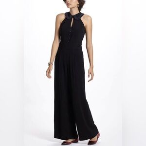 Anthropology, Elevenses Black Halter with beaded collar Jumpsuit size 2