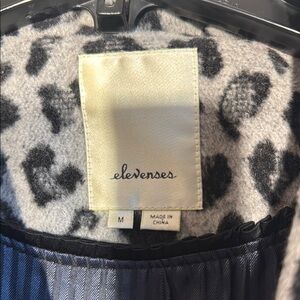 This elegant pea coat from Elevenses (Anthropology) features a striking black and gray animal print, offering a bold yet sophisticated look. The medium-length design with a classic lapel collar ensures a timeless style, while the full-length sleeves provide warmth and comfort. Perfect for adding a touch of flair to any outfit, this coat is a standout piece in any wardrobe.
