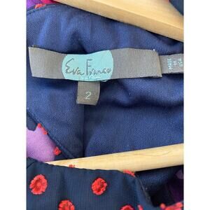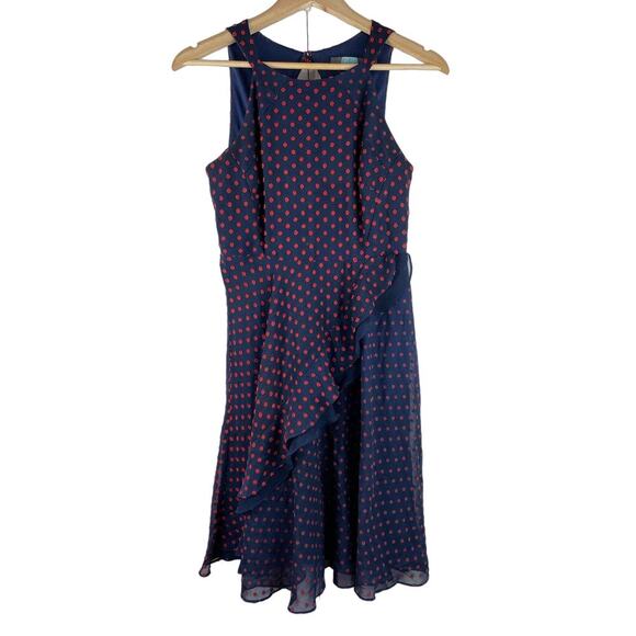 Anthropology Eva Franco Maryanne Women's Size 2 Blue Red Polka Dot Ruffle Dress. Pre-owned in very good condition.