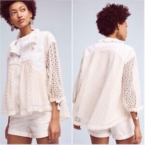 Anthropology Eyelet Lace Woman's Swing Windbreaker Jacket - size Medium Feminine Chic