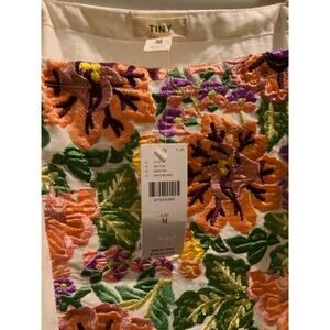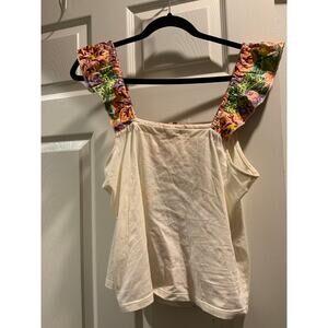 This sleeveless top features multicolored floral embroidery, offering a vibrant bohemian style. Made from cotton and rayon, it has a square neckline and is easy to care for with a pullover closure. The top is gently used with no rips or stains and is in good condition, though variations due to previous wear are possible. Please double-check measurements for the desired fit.