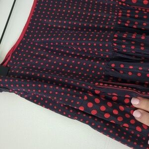 This stylish skirt features a striking red and navy pattern, perfect for any occasion. Its elegant design adds a touch of sophistication to your wardrobe. side zipper, lined, lightweight viscose fabric. feels silky and flowy.