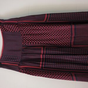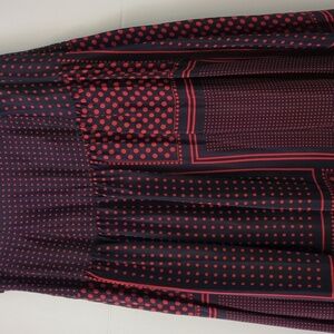 Anthropology Geo Print Elegant Red& Navy A Line Flowy Polka Dot Maxi Skirt Sz 2
