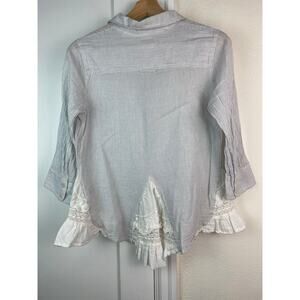 Anthropology Holding Horses Womens 2 White Pinstripe Lace Ruffle Button Up Shirt