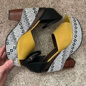Very vibrant yellow upper with patterned wedge