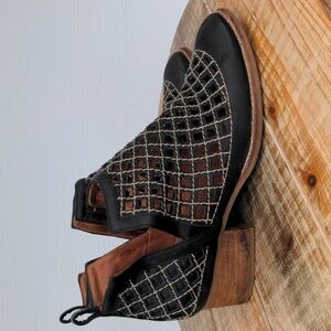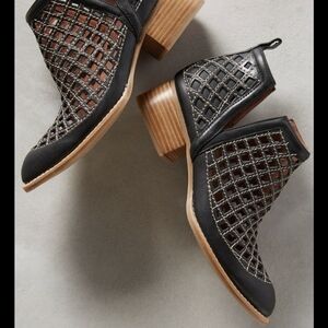 Anthropology Jeffrey Campbell Taggart Leather Ankle Boots Black Sz 6.5 Perforate