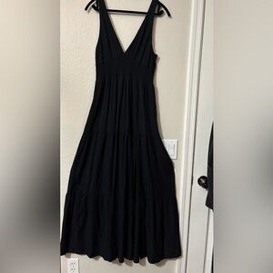 Anthropology L Space Lilikoi V Neck Tiered High Slit, Smocked Black Maxi Dress