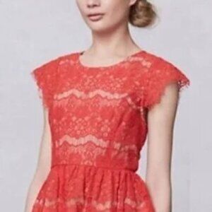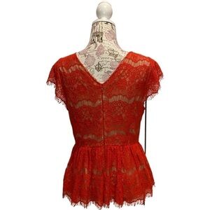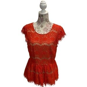 Anthropology Maeve Red Lace Katrina Peplum Top Size Medium
