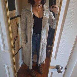 So pretty and fun to style. Perfect for fall, long and with side pockets. good condition, light wear.