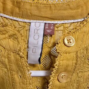 Anthropology Pilcro Mustard Yellow Blouse with Gold Thread Detail Size 4