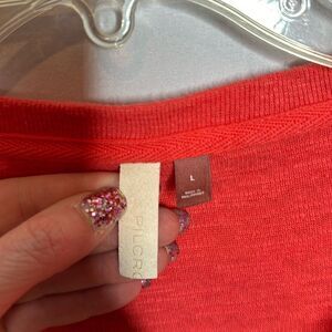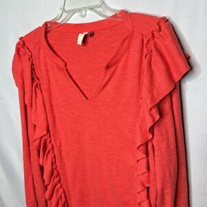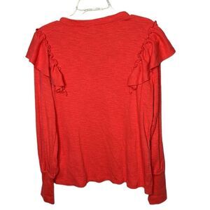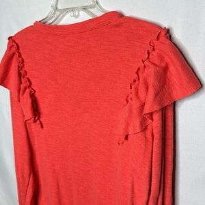 Anthropology Pilcro Women’s Cozy Popover Ruffle V-neck Sweater Top. Size Large. Color: coral. Excellent condition.