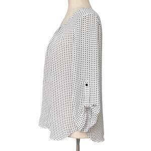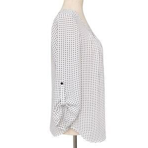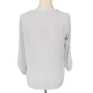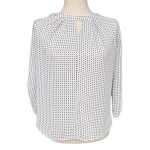 This Anthropology Pleione Semi Sheer 3/4 Sleeve Keyhole Blouse Black & White, Women’s Size XS is a perfect top for school, work or a casual night out.