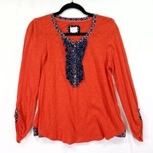 Anthropology Postmark Long Sleeve Top Size Small Ruffle Henley Tshirt