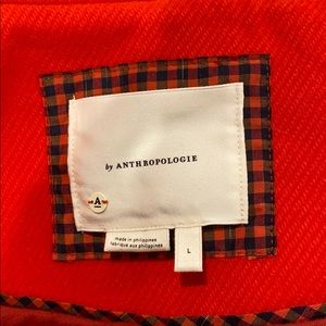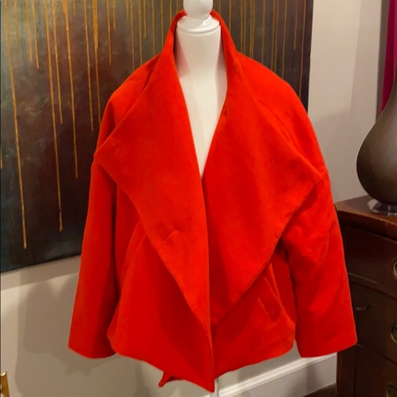 Slouchy coat with large brown buttons, can be worn several different ways. Perfect for a cool spring day. In bright cherry red. EUC