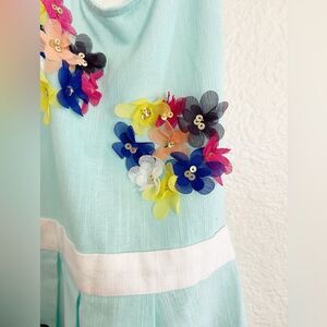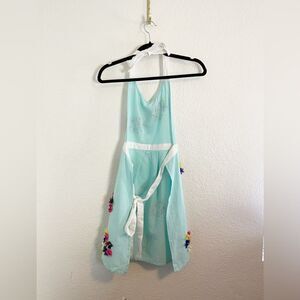 Anthropology retro inspired apron in robin’s egg blue with 3D flowers. NWT