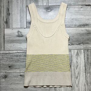 Chic ribbed knit top in cream and yellow. Ideal for everyday style.