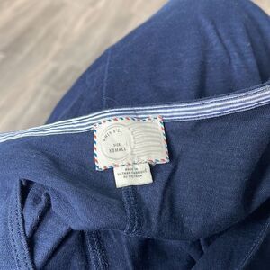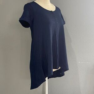 Anthropology navy tee shirt that’s longer in the back with cuff sleeves, buttons