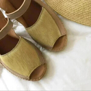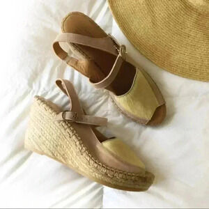 Anthopologie- suede + leather wedge sandal with peep toe and ankle strap perfect for any occasion. These espadrilles are new and has never been worn. They are in great condition.