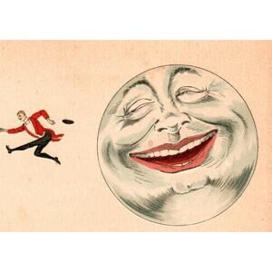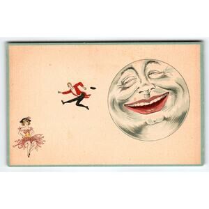 Anthropomorphic Laughing Moon Man Jumping Show Girl Fantasy Postcard Series 570