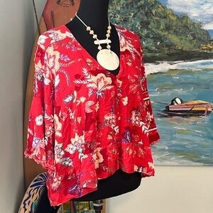 Anthropologie’s JAANSE, Size Large, - adorable loose flowy blouse, very flattering when on - bell sleeves with cute sleeve details, v-neck with adorable buttons - no noticeable flaws, size Large #LuxuryFashion.