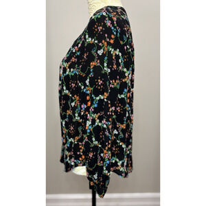 Chic black blouse with vibrant floral pattern. Features long sleeves and a relaxed fit. Perfect for casual or dressy occasions.