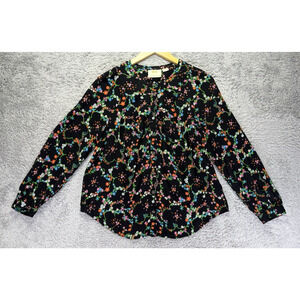 Anthrpologie Maeve Black Floral Blouse Sz 8 Button Down