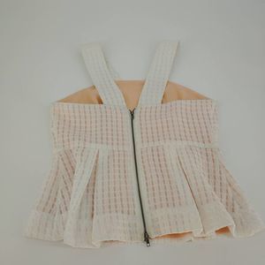 Anthrpologie Maeve White Sleeveless Basket Weave Peplum Top Sz 6P