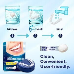 Anti Grinding Mouth Guard for Teeth Clenching at Night 4 Guards & 12 Clean Tabs