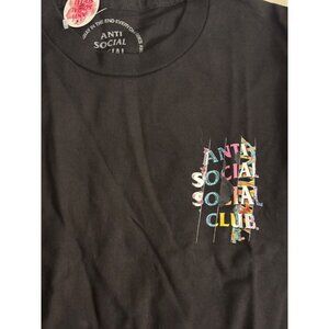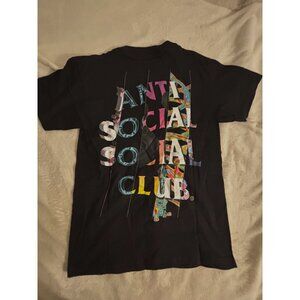 This black t-shirt from Anti Social Social Club features vibrant graphic prints on the front and back. Crafted from 100% cotton, it ensures comfort and durability. Designed in a size small, it offers a true-to-size fit. Made in the USA, the shirt embodies quality craftsmanship and unique style.