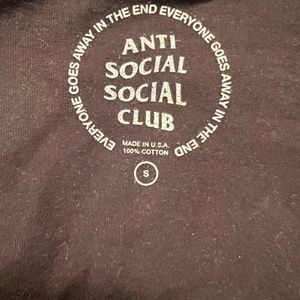 Only worn one time. Excellent condition. Size small men's black T Anti Social Social Club with a purple logo. Length 25.5", pit to pit 17.75".