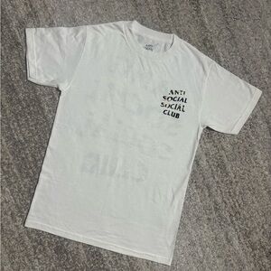 White tee featuring gray Anti Social Social Club text. Made in USA. 100% cotton.