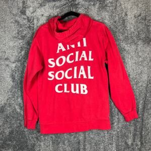 Anti Social Social Club Hoodie Mens Small Red Sweatshirt Pullover Pockets Fries