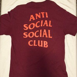 Make a bold statement with this maroon Anti Social Social Club tee. With its striking logo front and back, this shirt is the epitome of streetwear cool.