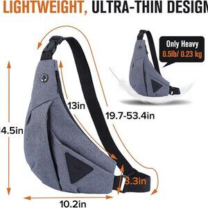 Ultra-thin Design, Large Capacity Anti-theft Travel Bag is made of polyester material. Personal Crossbody Shoulder Bags of size: 14.5*10.2*1 inch, lightweight only 0.5lb/230g. Sling pack bag for men perfectly works as sling shoulder bag, one strap backpack, fanny pack bag, cross body chest bag, sling crossbody backpack, satchel bag, outdoor sports bag, working business bag, Messenger Bags, always keeps your hands free.