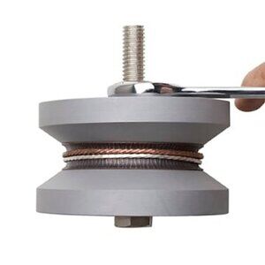 This tool can either be used with a hydraulic press, or manually with a wrench.