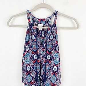 Antibes Blanc Boho Floral Print Stretch Jersey Knit Sleeveless Maxi Dress Sz S