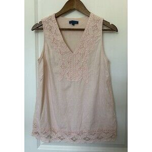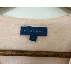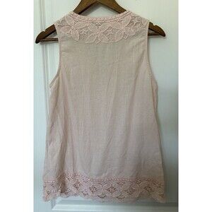 AntibesBlanc Shirt Medium Linen Blend Floral Embroidered Lace Crochet Trim Blush
