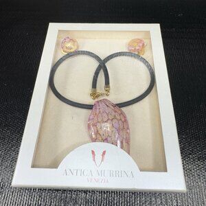 Antica Murrina Venezia Necklace Clip On Earrings Set Pink Glass Millefiori New