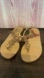Elevate your look with these stunning tan sandals adorned with bronze/copper gold embellishments. Perfect for adding a touch of elegance to any outfit.