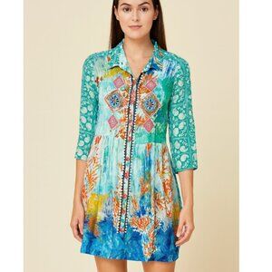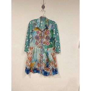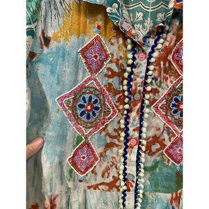 Antica Sartoria Dress Womens Small Multicolor Embroidered Boho Button Down