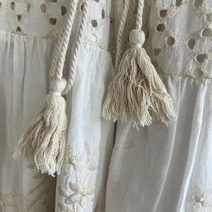 Antica Sartoria- Elegant Cream Eyelet and Lace Top tassel tie closure - Small