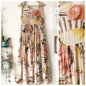Antica Sartoria Positano Seashell Print Sleeveless Tiered A-Line Maxi Dress S/M