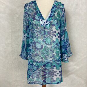 Antica Sartoria Sheer Blue Floral Bird Beach Coverup NWT One Size