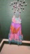Vibrant chic sleeveless dress featuring a mix of colorful patterns of purple, pink, and blue with fringe details.