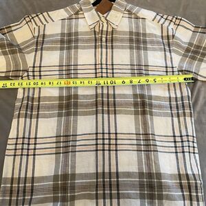 Antigua Men’s Medium Casual Button Up Shirt Plaid Linen Blend NWT Short Sleeve