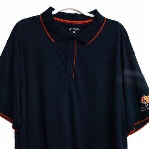 Men’s Antigua polo shirt in navy features red trim and Auburn University logo on sleeve. Ideal for casual wear or supporting your team.
